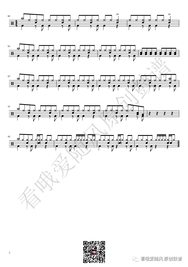 ONEOKROCK《IWasKing》架子鼓谱,看哦爱随风编配出品,共有2张高清图谱,由打鼓谱上传并分享。