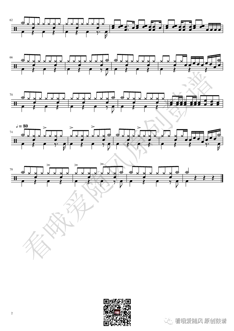 ONEOKROCK《IWasKing》架子鼓谱,看哦爱随风编配出品,共有2张高清图谱,由打鼓谱上传并分享。