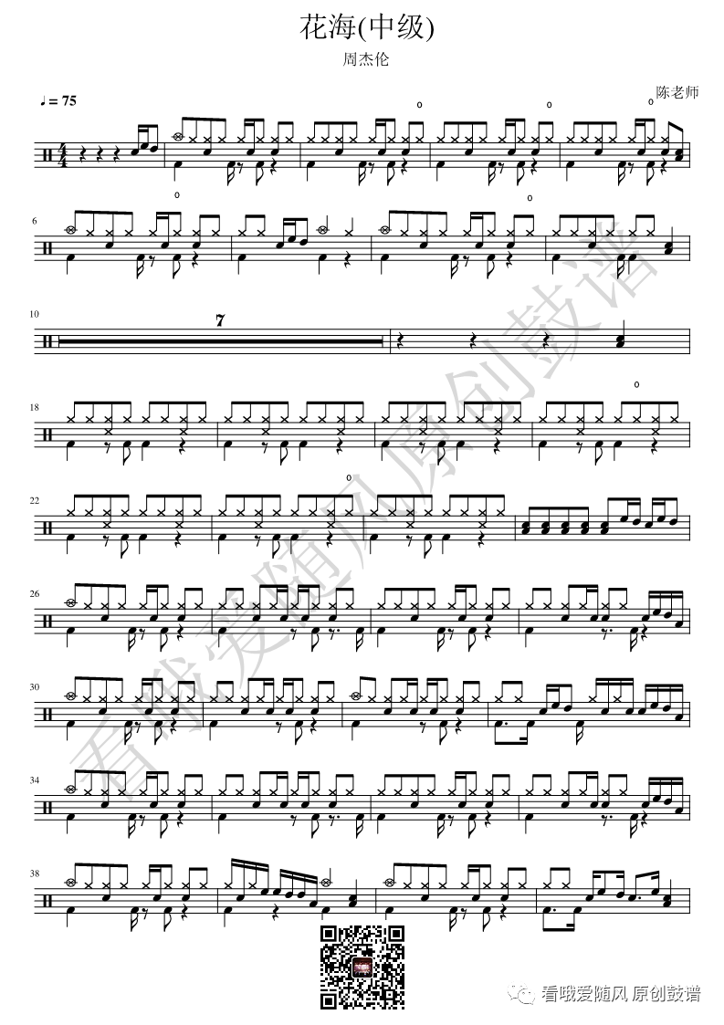周杰伦《花海》鼓谱 - 架子鼓谱 - 中级版