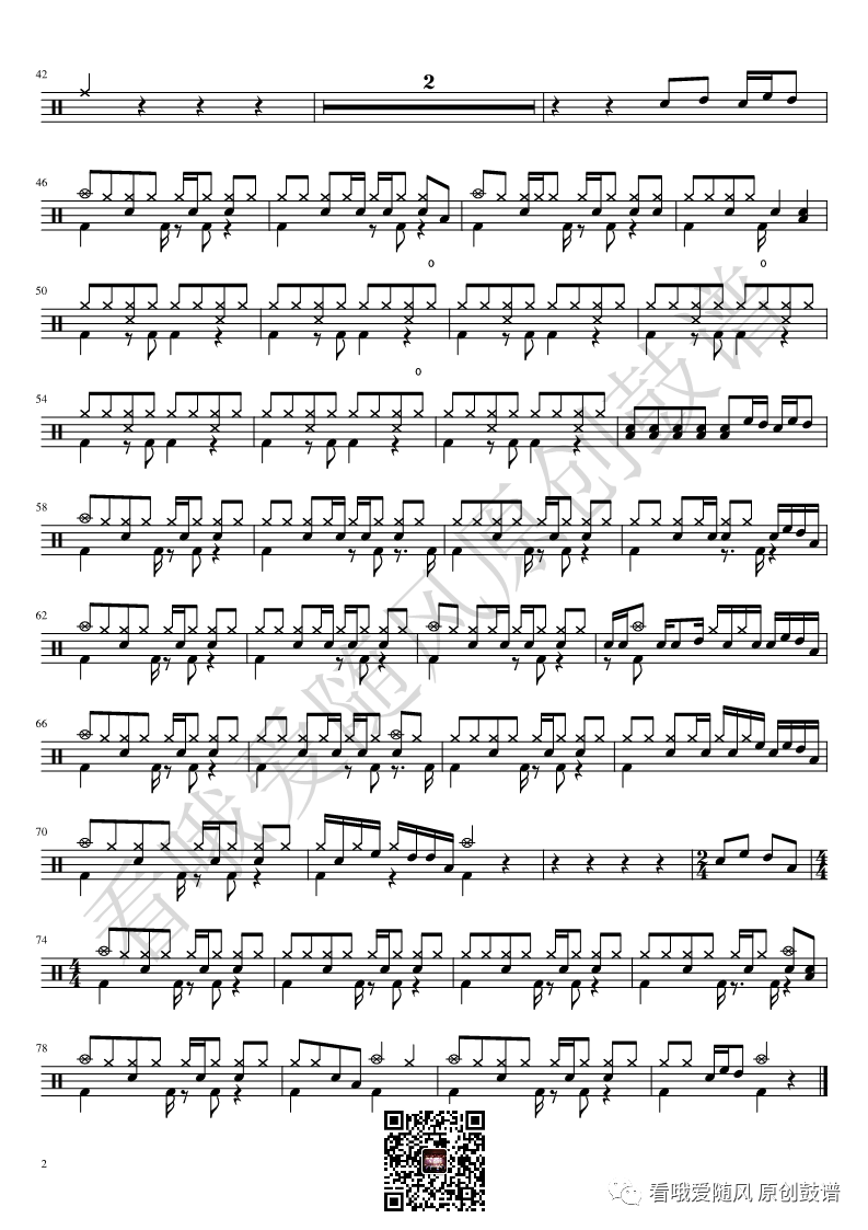 ONEOKROCK《IWasKing》架子鼓谱,看哦爱随风编配出品,共有2张高清图谱,由打鼓谱上传并分享。