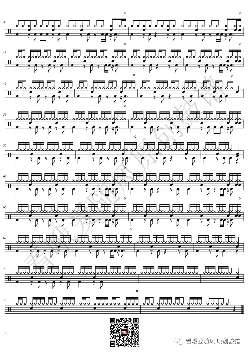 ONEOKROCK《IWasKing》架子鼓谱,看哦爱随风编配出品,共有2张高清图谱,由打鼓谱上传并分享。