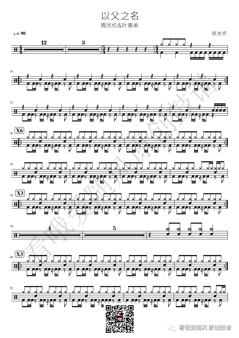 周杰伦《白色风车》鼓谱 - 架子鼓谱