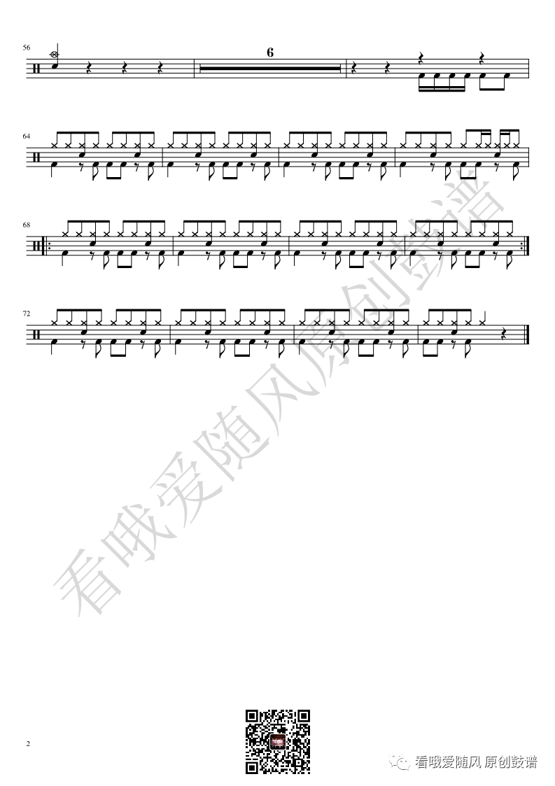 ONEOKROCK《IWasKing》架子鼓谱,看哦爱随风编配出品,共有2张高清图谱,由打鼓谱上传并分享。