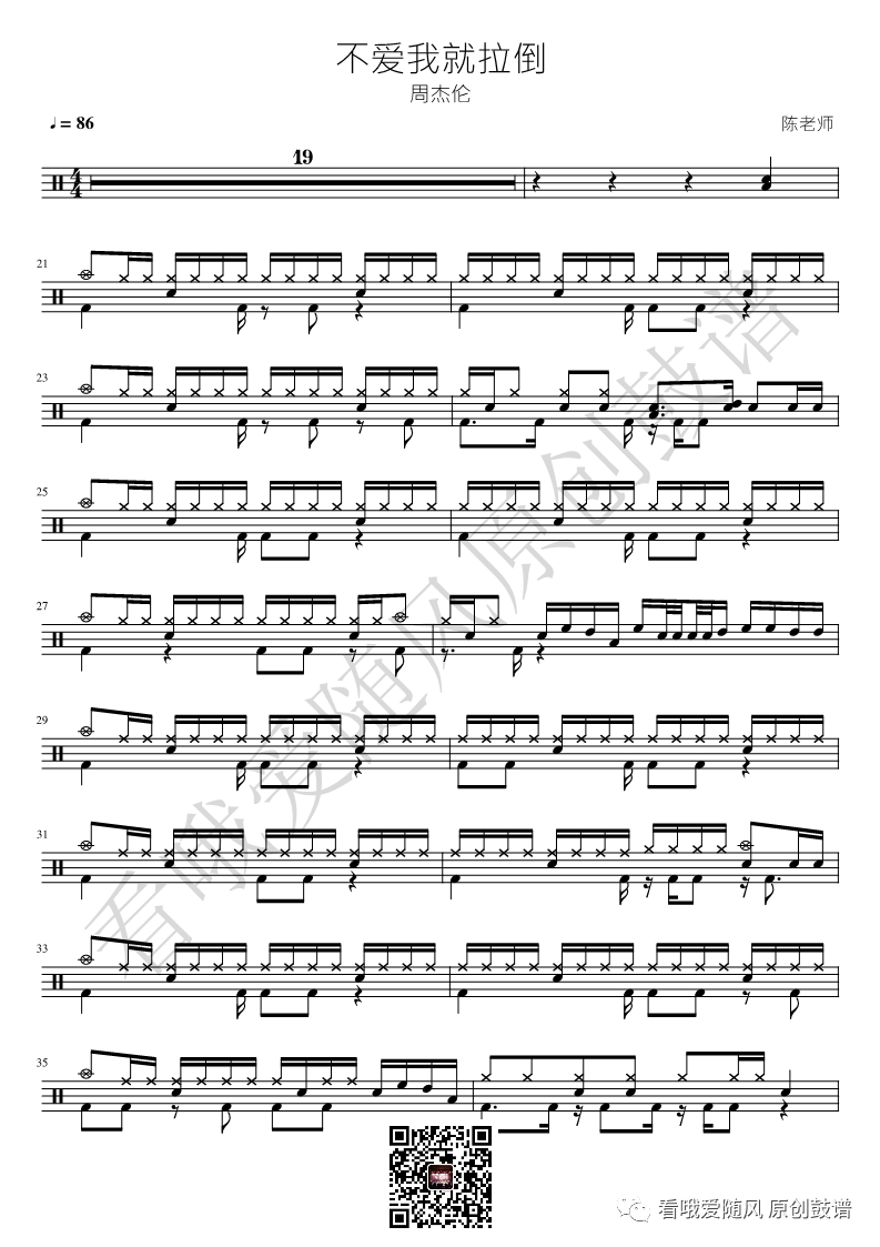 周杰伦《不爱我就拉倒》鼓谱 - 架子鼓谱