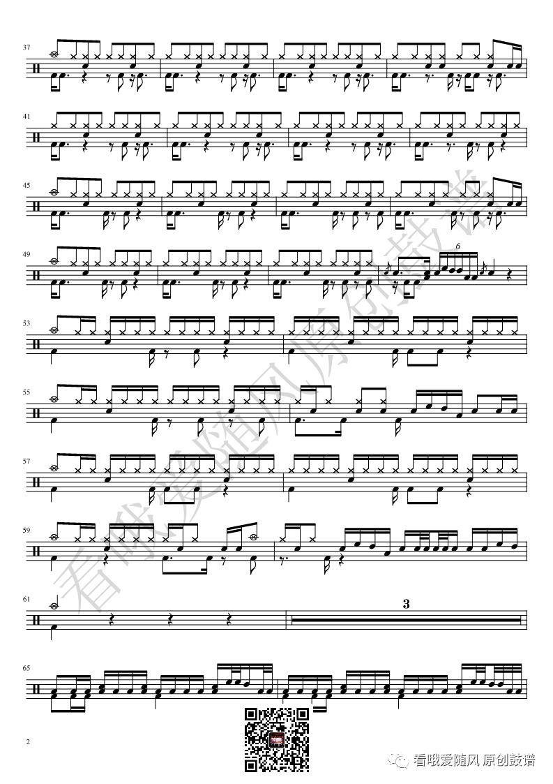 ONEOKROCK《未完成交響曲》架子鼓谱,看哦爱随风编配出品,共有1张高清图谱,由打鼓谱上传并分享。
