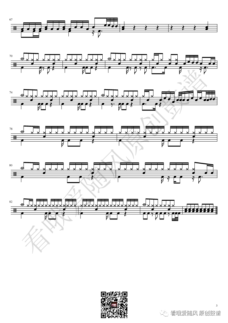ONEOKROCK《Re:make》架子鼓谱,看哦爱随风编配出品,共有3张高清图谱,由打鼓谱上传并分享。