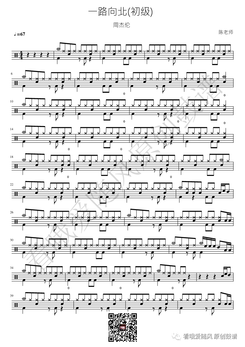 周杰伦《一路向北》架子鼓谱初级, 看哦爱随风编配出品,共有2张高清图谱,由打鼓谱上传并分享。NO.254 一路向北(初级)周杰伦 鼓谱