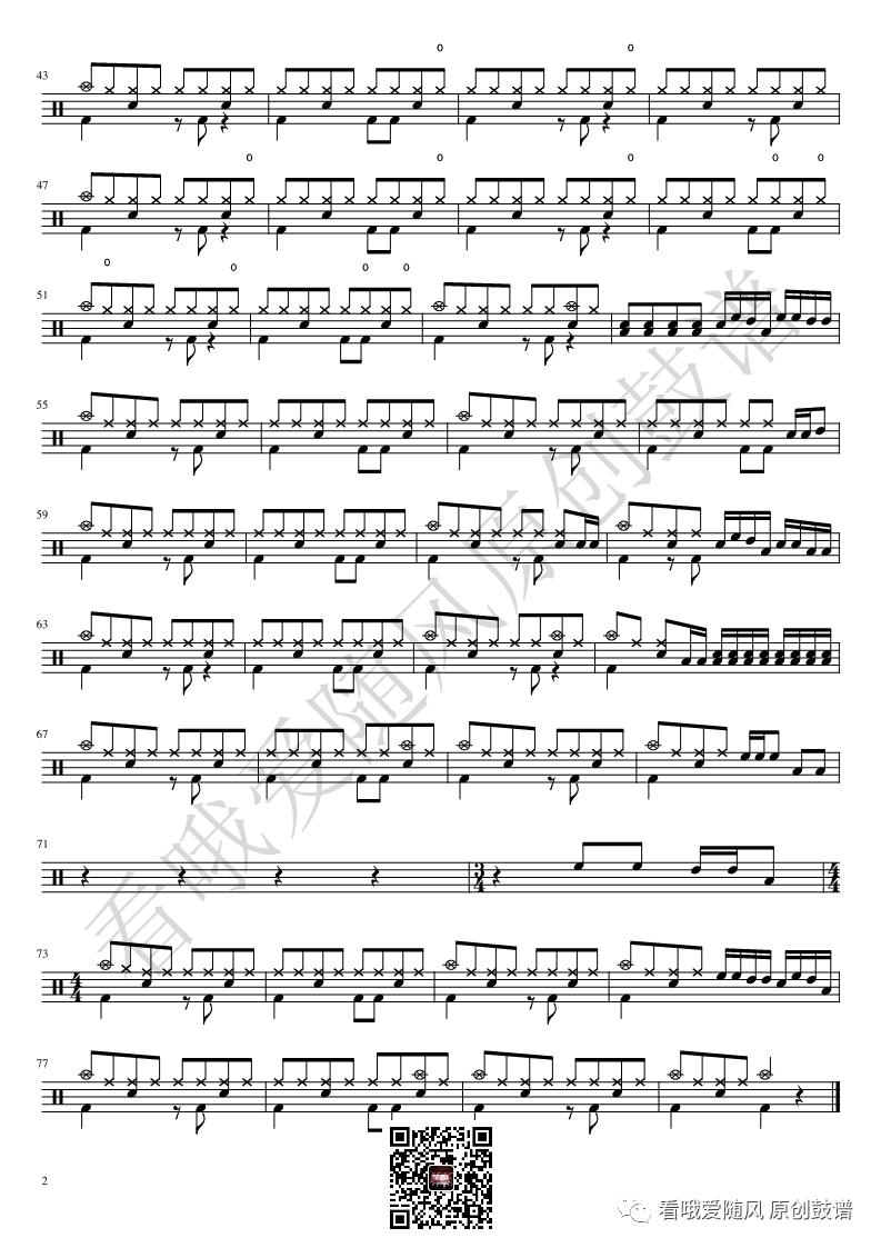 ONEOKROCK《IWasKing》架子鼓谱,看哦爱随风编配出品,共有2张高清图谱,由打鼓谱上传并分享。