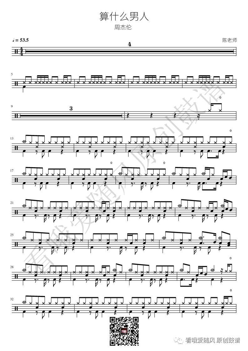周杰伦《算什么男人》架子鼓谱, 看哦爱随风编配出品,共有2张高清图谱,由打鼓谱上传并分享。NO.260 算什么男人 周杰伦 鼓谱