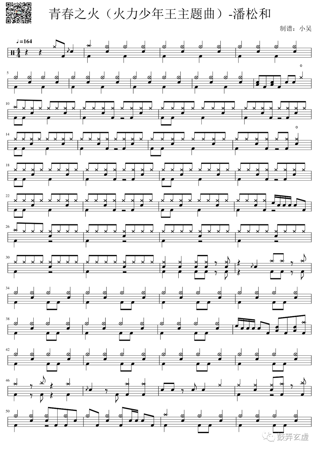 潘松和《青春之火》鼓谱 - 架子鼓谱 - 火力少年王主题曲