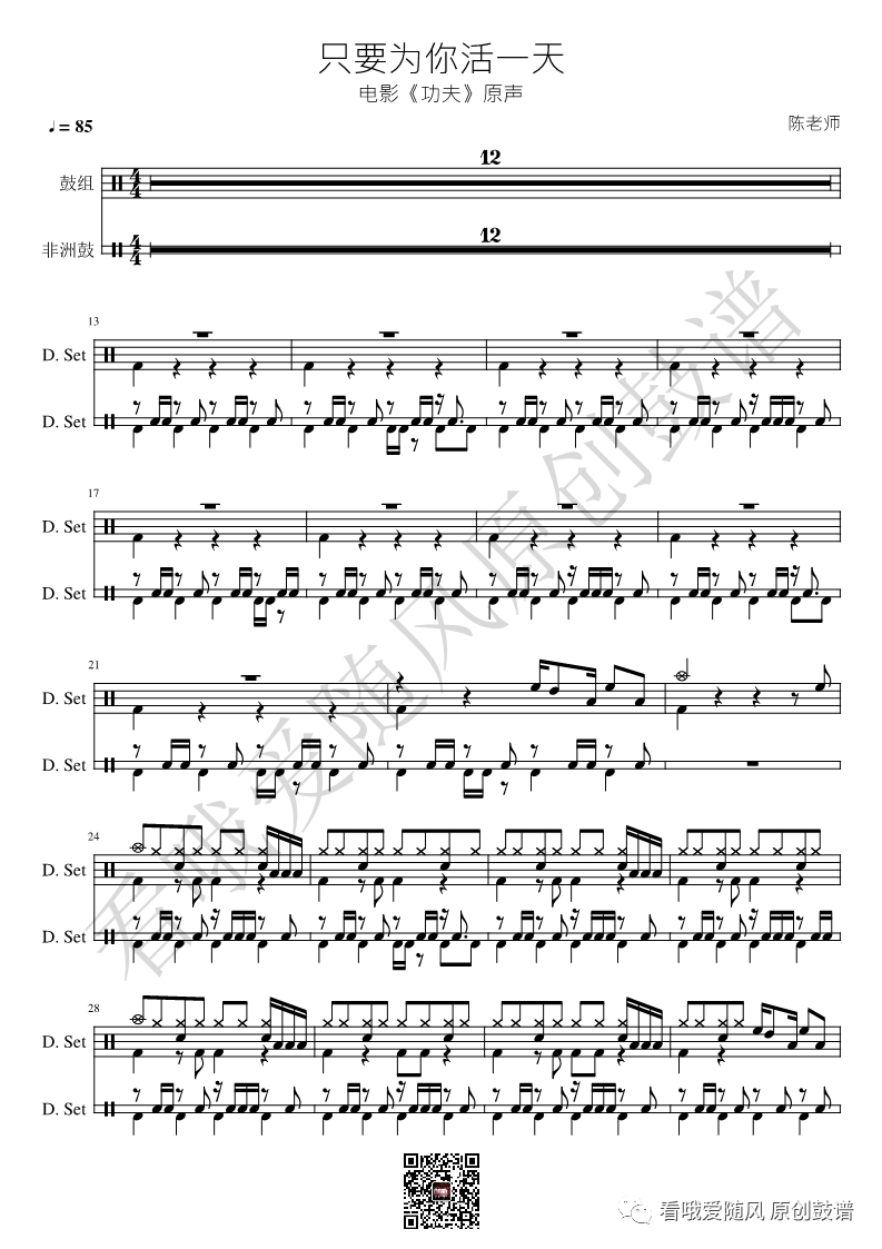 周星驰《只要为你活一天》架子鼓谱, 看哦爱随风编配出品,共有2张高清图谱,由打鼓谱上传并分享。NO.273 只要为你活一天【周星驰《功夫》】鼓谱