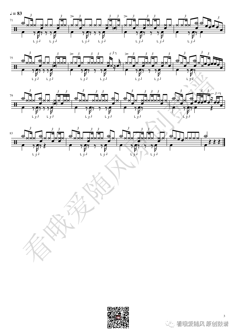 ONEOKROCK《Re:make》架子鼓谱,看哦爱随风编配出品,共有3张高清图谱,由打鼓谱上传并分享。