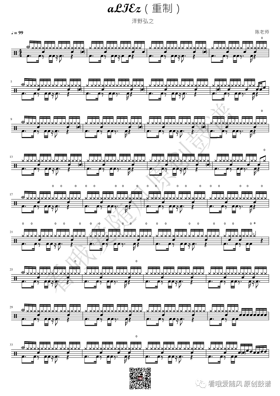 泽野弘之《aLIEz》架子鼓谱重制, 看哦爱随风编配出品,共有3张高清图谱,由打鼓谱上传并分享。NO.276 aLIEz【核爆神曲】(重制)泽野弘之 鼓谱