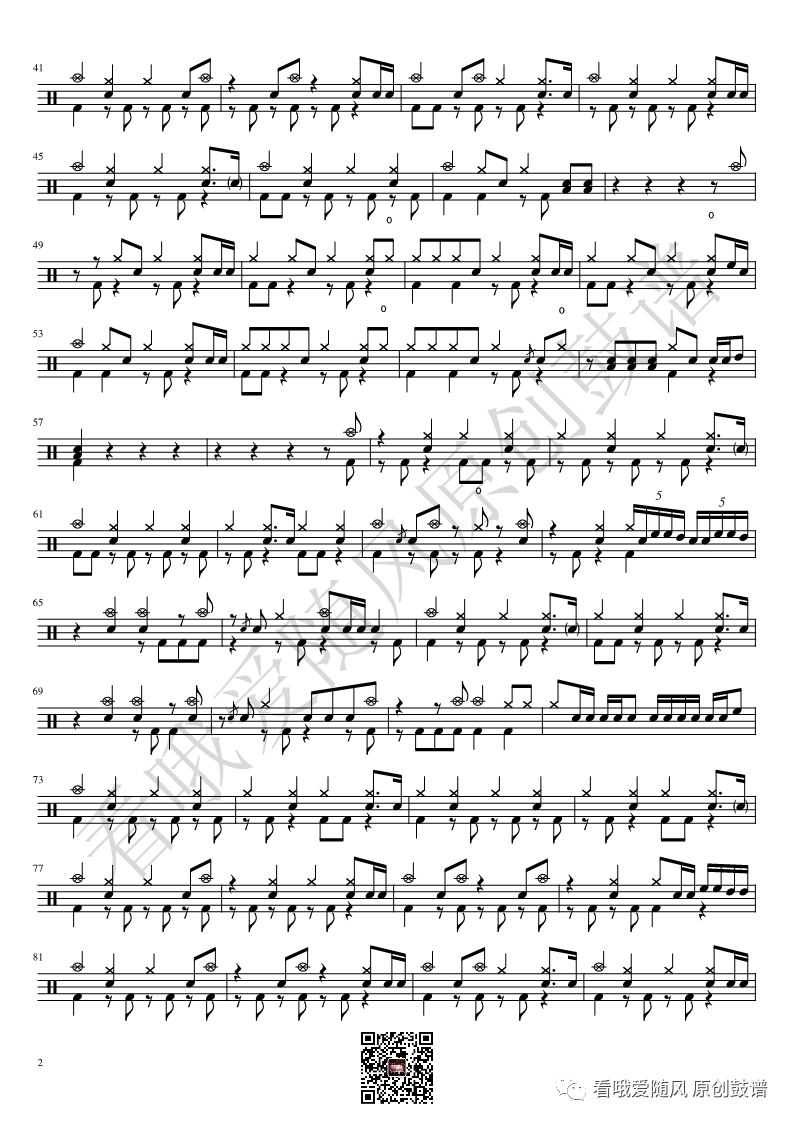 ONEOKROCK《IWasKing》架子鼓谱,看哦爱随风编配出品,共有2张高清图谱,由打鼓谱上传并分享。