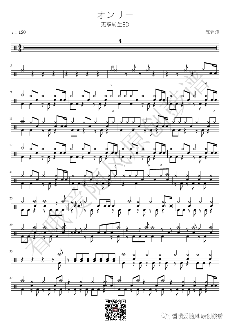 无职转生《オンリー》架子鼓谱, 看哦爱随风编配出品,共有3张高清图谱,由打鼓谱上传并分享。NO.290 オンリー【无职转生】鼓谱