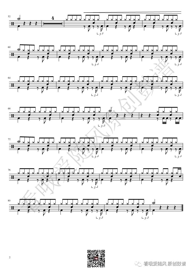 ONEOKROCK《IWasKing》架子鼓谱,看哦爱随风编配出品,共有2张高清图谱,由打鼓谱上传并分享。