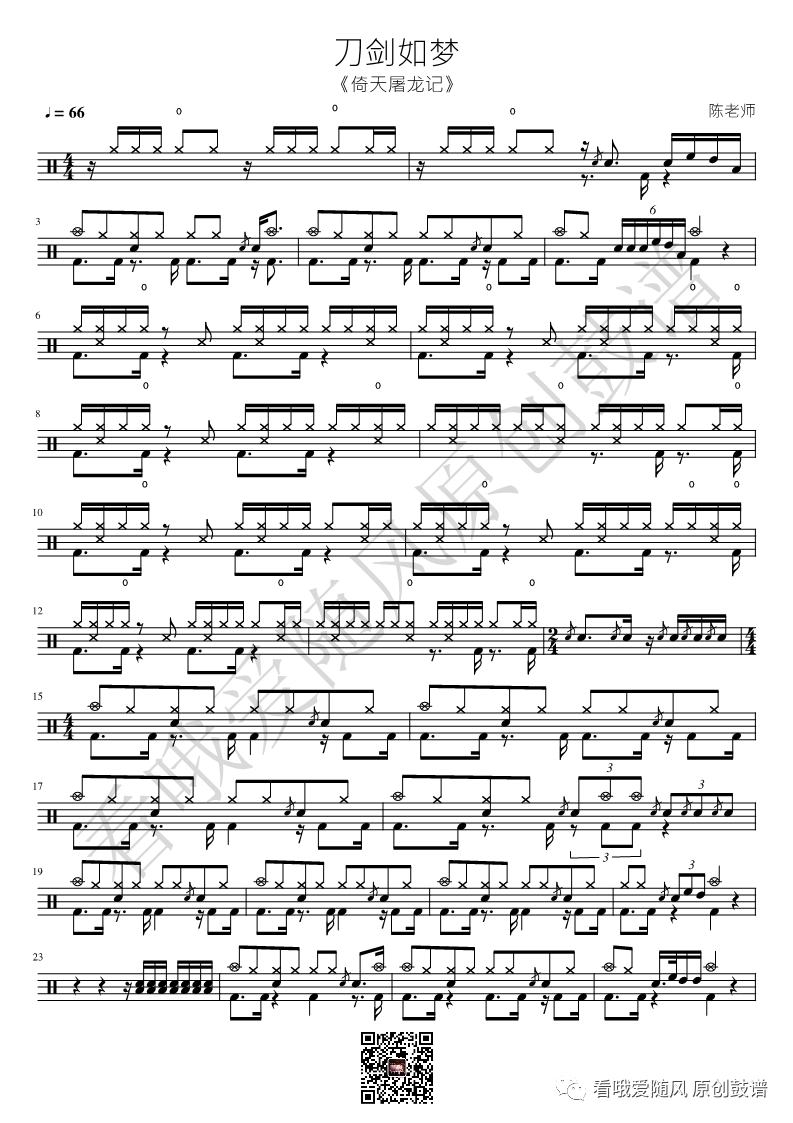 倚天屠龙记《刀剑如梦》架子鼓谱, 看哦爱随风编配出品,共有2张高清图谱,由打鼓谱上传并分享。NO.285 刀剑如梦【倚天屠龙记】鼓谱
