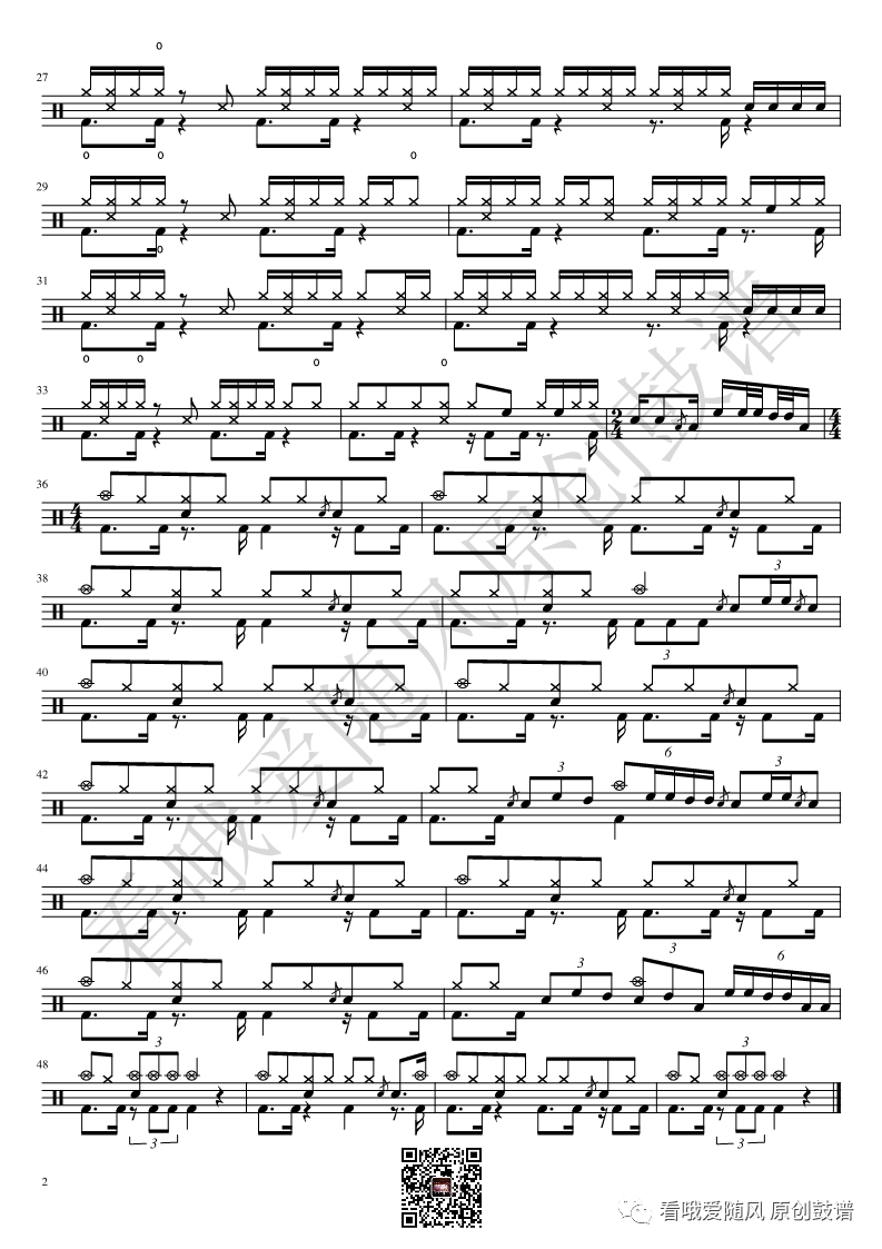 ONEOKROCK《IWasKing》架子鼓谱,看哦爱随风编配出品,共有2张高清图谱,由打鼓谱上传并分享。