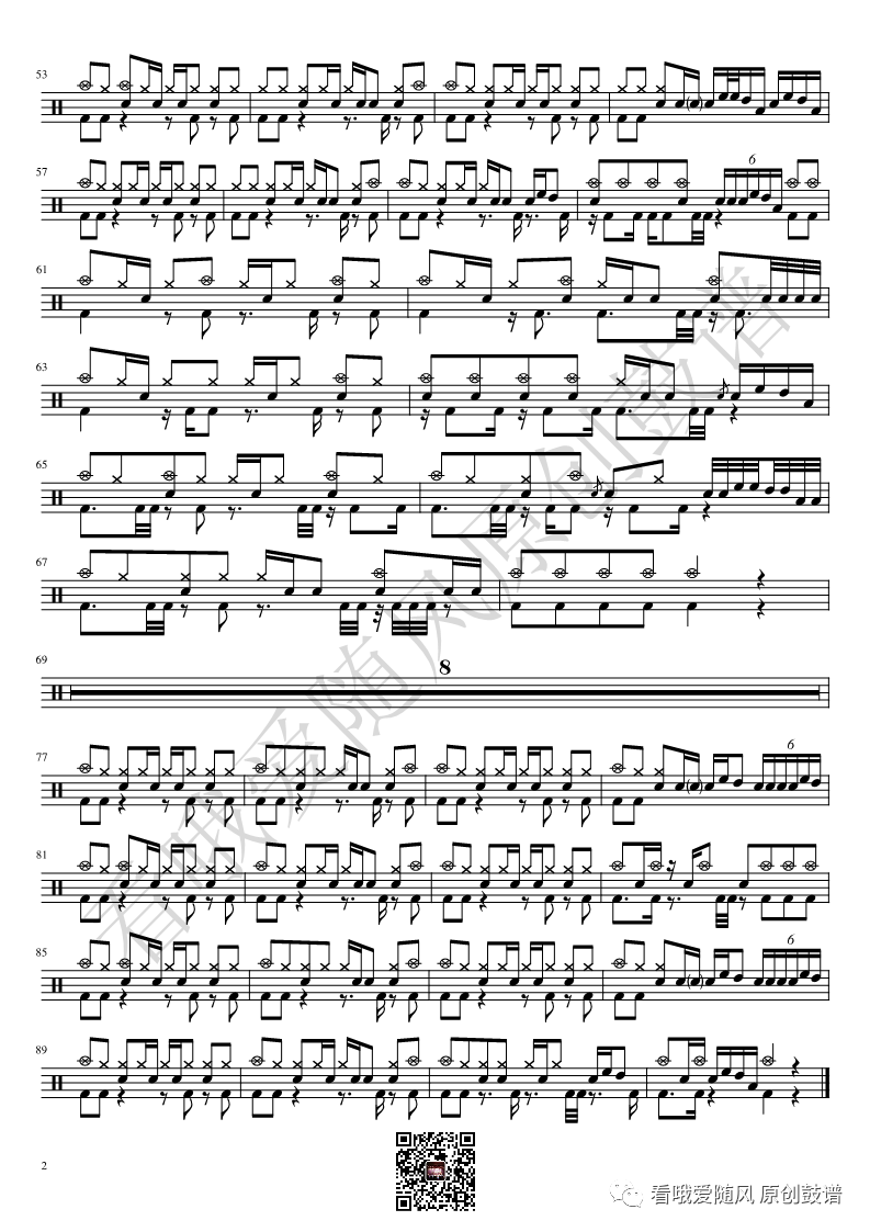 ONEOKROCK《IWasKing》架子鼓谱,看哦爱随风编配出品,共有2张高清图谱,由打鼓谱上传并分享。