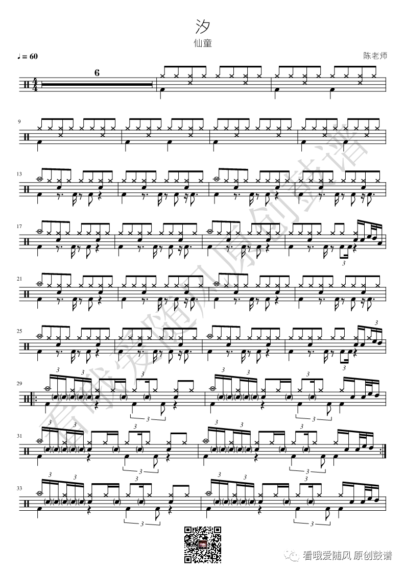 ONEOKROCK《未完成交響曲》架子鼓谱,看哦爱随风编配出品,共有1张高清图谱,由打鼓谱上传并分享。