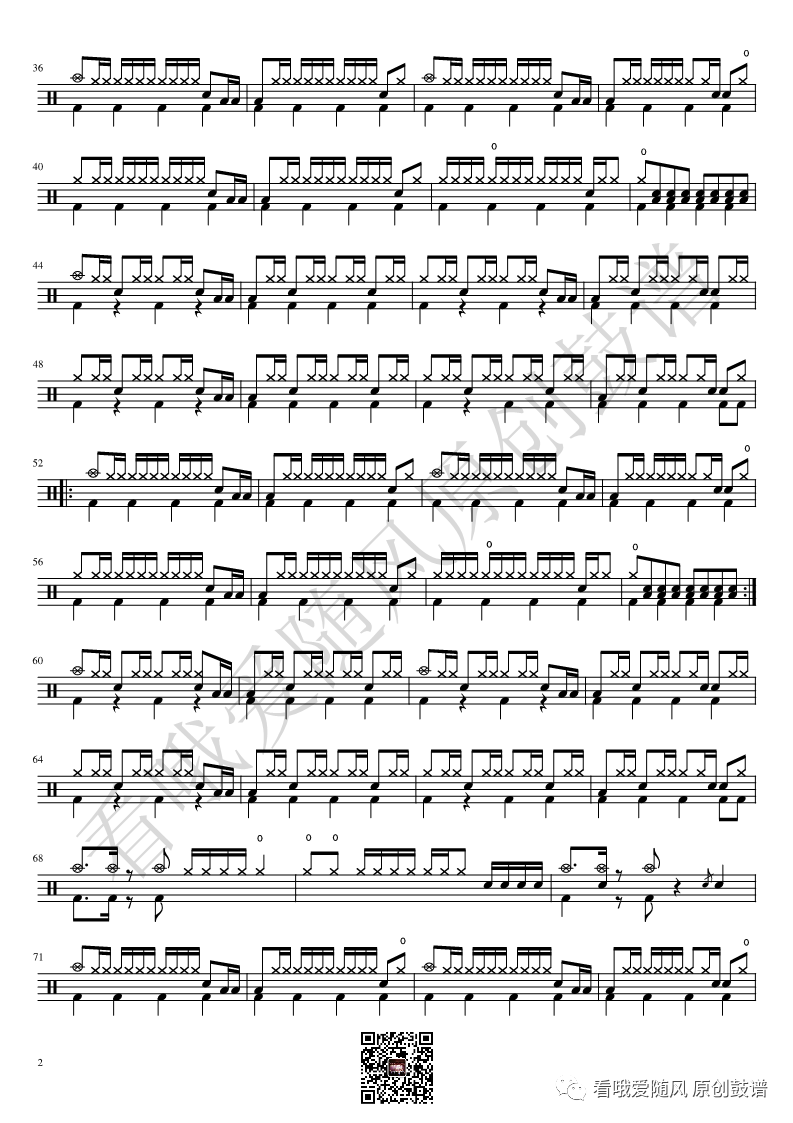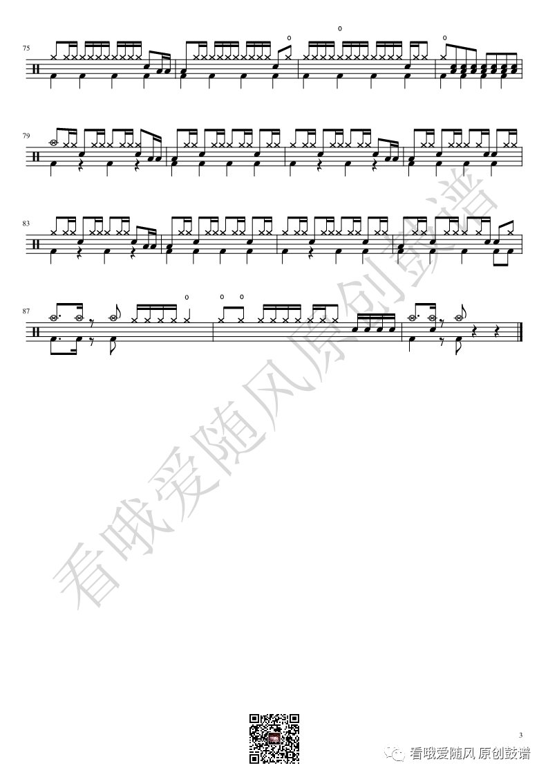 ONEOKROCK《未完成交響曲》架子鼓谱,看哦爱随风编配出品,共有1张高清图谱,由打鼓谱上传并分享。