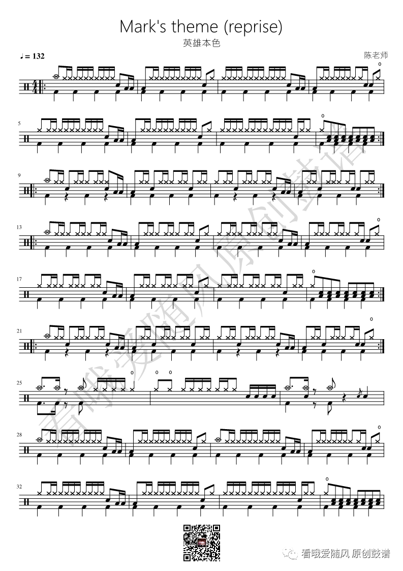 如龙维新OP《ClockStrikes》架子鼓谱,看哦爱随风编配出品,共有1张高清图谱,由打鼓谱上传并分享。