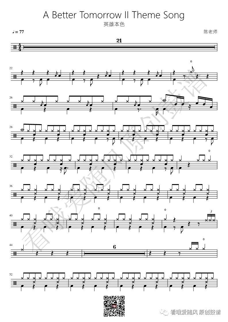 《英雄本色》鼓谱 - 架子鼓谱