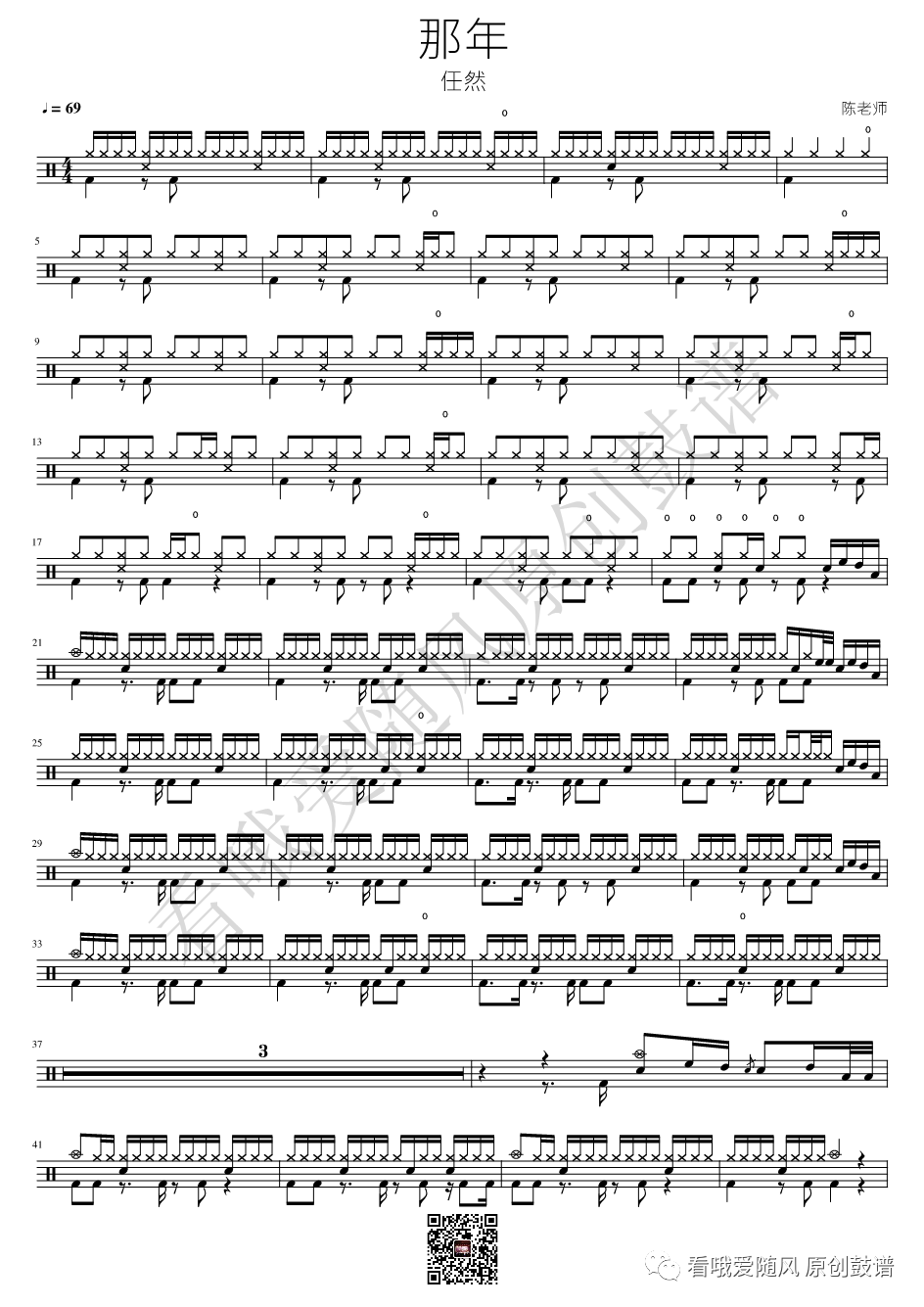 MYFIRSTSTORY《MissingYou》架子鼓谱,看哦爱随风编配出品,共有1张高清图谱,由打鼓谱上传并分享。