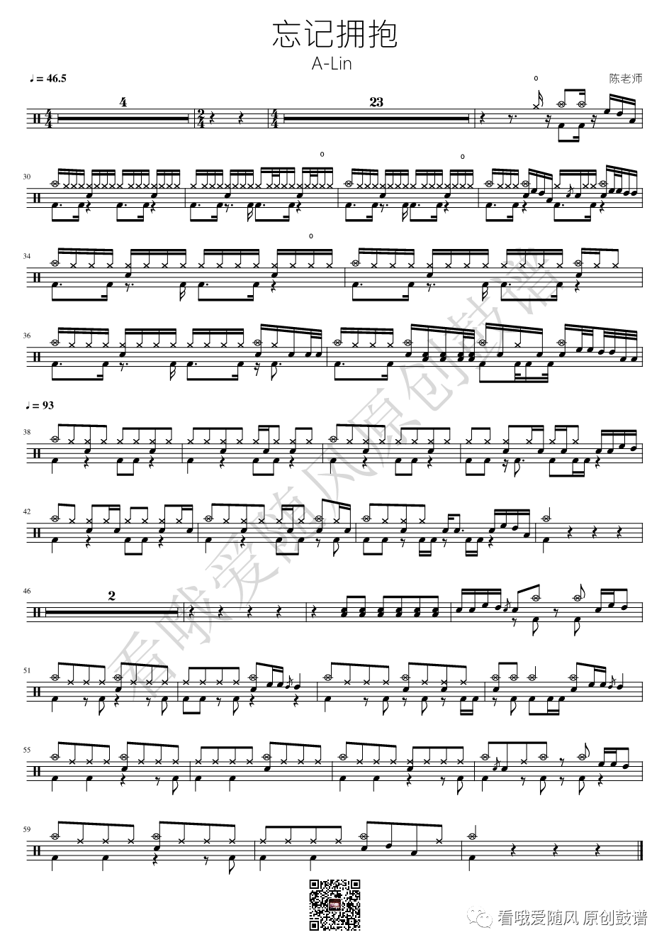A-Lin《忘记拥抱》架子鼓谱, 看哦爱随风编配出品,共有1张高清图谱,由打鼓谱上传并分享。NO.304 忘记拥抱 A-Lin 鼓谱