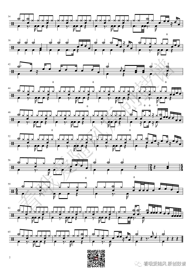 ONEOKROCK《IWasKing》架子鼓谱,看哦爱随风编配出品,共有2张高清图谱,由打鼓谱上传并分享。