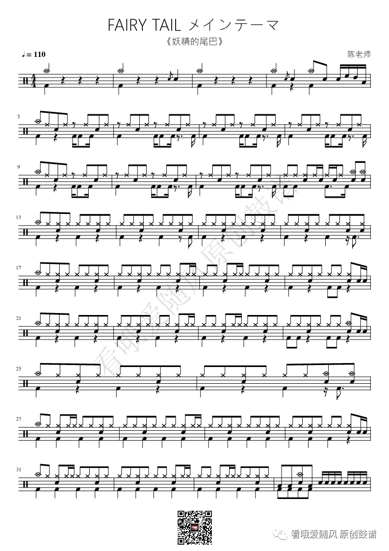妖精的尾巴《FAIRY TAIL メインテーマ》架子鼓谱, 看哦爱随风编配出品,共有2张高清图谱,由打鼓谱上传并分享。NO.321 FAIRY TAIL メインテーマ【妖精的尾巴】鼓谱