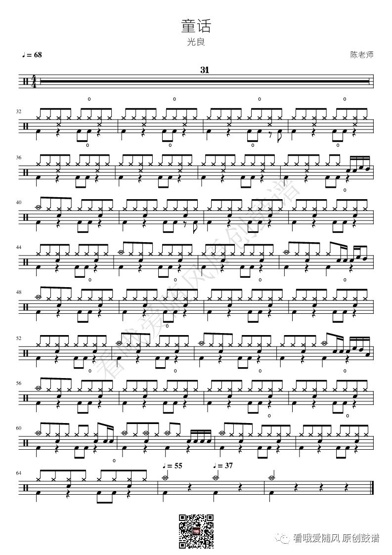 ONEOKROCK《未完成交響曲》架子鼓谱,看哦爱随风编配出品,共有1张高清图谱,由打鼓谱上传并分享。