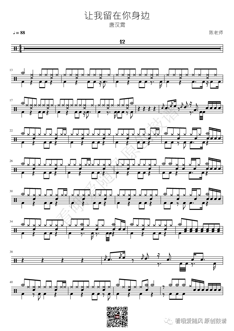 唐汉霄《让我留在你身边》架子鼓谱, 看哦爱随风编配出品,共有2张高清图谱,由打鼓谱上传并分享。NO.330 让我留在你身边 唐汉霄 鼓谱