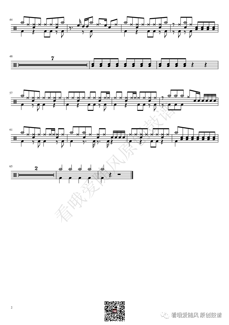 ONEOKROCK《未完成交響曲》架子鼓谱,看哦爱随风编配出品,共有1张高清图谱,由打鼓谱上传并分享。
