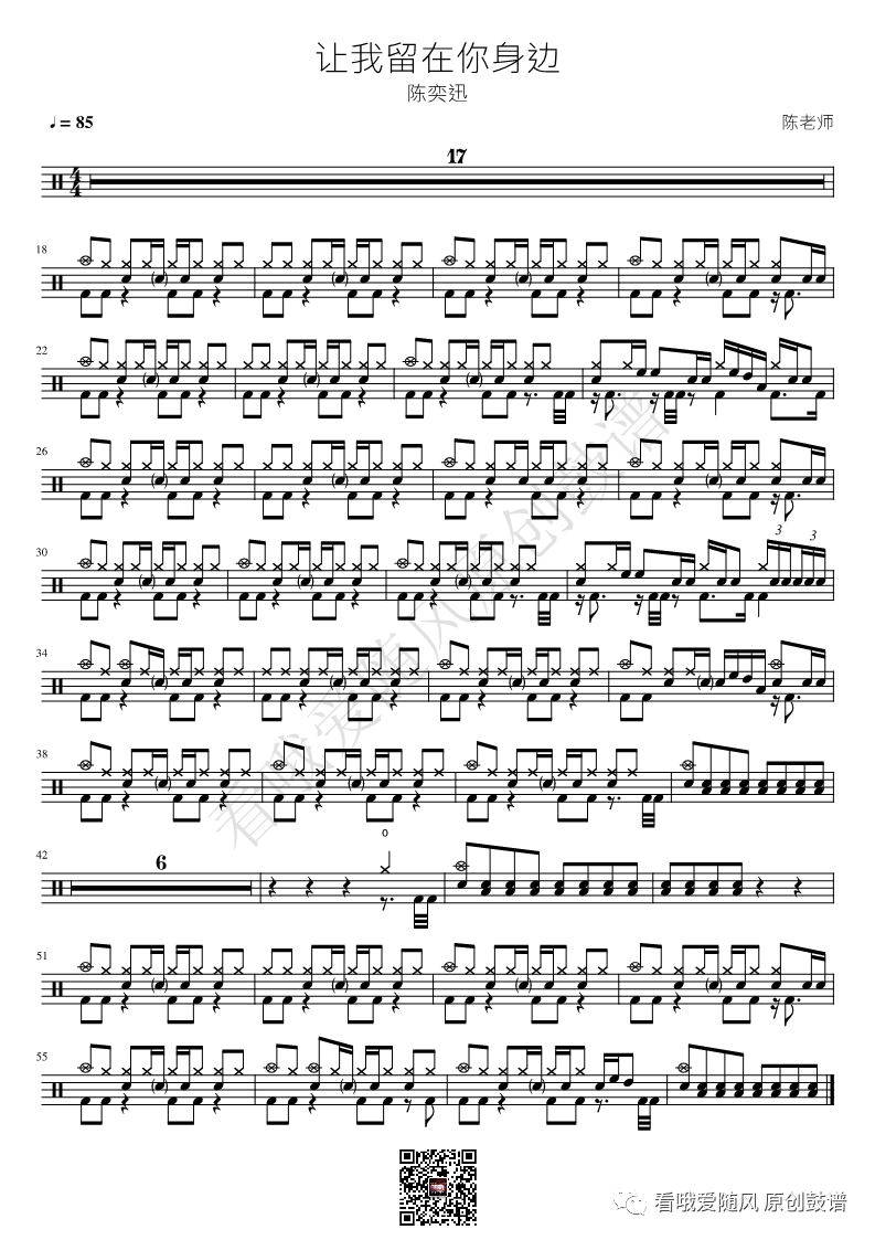 陈奕迅《让我留在你身边》架子鼓谱, 看哦爱随风编配出品,共有1张高清图谱,由打鼓谱上传并分享。NO.329 让我留在你身边 陈奕迅 鼓谱