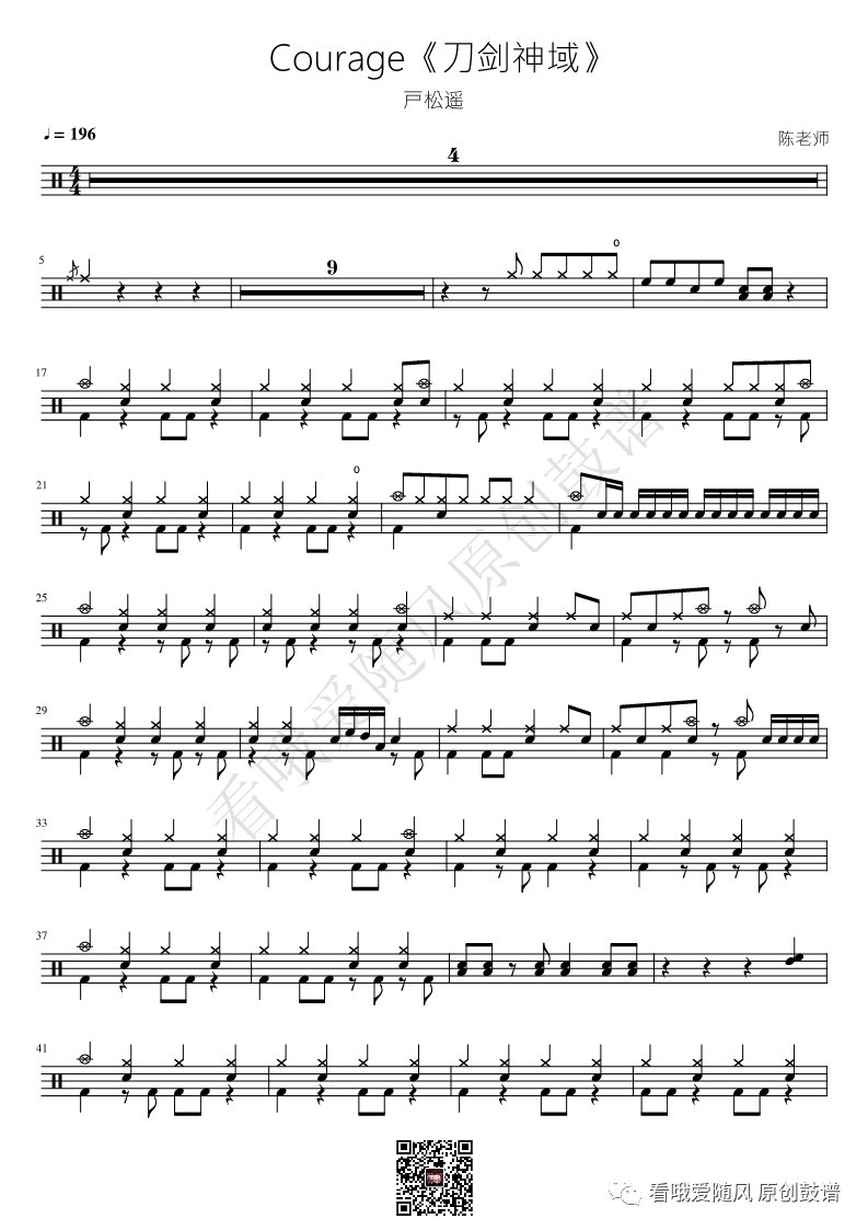 戸松遥《Courage/刀剑神域》鼓谱 - 架子鼓谱 看哦爱随风 • 2022-11-03 • 阅读 879 戸松遥《Courage/刀剑神域》架子鼓谱, 看哦爱随风编配出品,共有5张高清图谱,由打鼓谱上传并分享。NO.325 Courage【刀剑神域】戸松遥 鼓谱 戸松遥《Courage/刀剑神域》鼓谱 - 架子鼓谱 - 第1张 戸松遥《Courage/刀剑神域》鼓谱 - 架子鼓谱 - 第2张 戸松遥《Courage/刀剑神域》鼓谱 - 架子鼓谱 - 第3张 戸松遥《Courage/刀剑神域》鼓谱 - 架子鼓谱 - 第4张 戸松遥《Courage/刀剑神域》鼓谱 - 架子鼓谱 - 第5张 免责声明:本文版权归属 看哦爱随风,本站不对其内容的准确性给予任何承诺,收录仅供读者参考。如本文侵犯了您的合法权益,请及时联系本站,我们将在24小时内删除处理。本文链接:https://www.dagupu.com/pu/658.html 刀剑神域《Catch the Moment》鼓谱 - 架子鼓谱 上一篇 2022-11-03 The xx《Intro》鼓谱 - 架子鼓谱 下一篇 2022-11-03 相关推荐 ONE OK ROCK《Re:make》鼓谱 - 架子鼓谱 ONEOKROCK《Re:make》架子鼓谱,看哦爱随风编配出品,共有3张高清图谱,由打鼓谱上传并分享。 看哦爱随风 2023-06-17 5465 ONE OK ROCK《完全感觉Dreamer》鼓谱 - 架子鼓谱 ONEOKROCK《完全感觉Dreamer》架子鼓谱,看哦爱随风编配出品,共有4张高清图谱,由打鼓谱上传并分享。 看哦爱随风 2023-06-17 4043 ONE OK ROCK《The Beginning》鼓谱 - 架子鼓谱 ONEOKROCK《TheBeginning》架子鼓谱,看哦爱随风编配出品,共有3张高清图谱,由打鼓谱上传并分享。 看哦爱随风 2023-06-17 3607 ONE OK ROCK《未完成交響曲》鼓谱 - 架子鼓谱 ONEOKROCK《未完成交響曲》架子鼓谱,看哦爱随风编配出品,共有1张高清图谱,由打鼓谱上传并分享。 看哦爱随风 2023-06-17 3253 网球王子《future》鼓谱 - 架子鼓谱 网球王子《future》架子鼓谱,看哦爱随风编配出品,共有1张高清图谱,由打鼓谱上传并分享。 看哦爱随风 2023-06-17 3785 夏日入侵企画《人间萤火》鼓谱 - 架子鼓谱 夏日入侵企画《人间萤火》架子鼓谱,看哦爱随风编配出品,共有2张高清图谱,由打鼓谱上传并分享。 看哦爱随风 2023-02-26 3598 夏日入侵企画《勇气》鼓谱 - 架子鼓谱 夏日入侵企画《勇气》架子鼓谱,看哦爱随风编配出品,共有2张高清图谱,由打鼓谱上传并分享。 看哦爱随风 2023-02-26 3600 周杰伦《一路向北》鼓谱 - 架子鼓谱 周杰伦《一路向北》架子鼓谱,看哦爱随风编配出品,共有1张高清图谱,由打鼓谱上传并分享。 看哦爱随风 2023-02-26 5473 萧敬腾《倒带》鼓谱 - 架子鼓谱 萧敬腾《倒带》架子鼓谱,看哦爱随风编配出品,共有2张高清图谱,由打鼓谱上传并分享。 看哦爱随风 2023-02-26 3944 容祖儿《东京人寿》鼓谱 - 架子鼓谱 容祖儿《东京人寿》架子鼓谱,看哦爱随风编配出品,共有2张高清图谱,由打鼓谱上传并分享。 看哦爱随风 2023-02-26 3519 悶餅MOONBAND《Dear Mary》鼓谱 - 架子鼓谱 悶餅MOONBAND《DearMary》架子鼓谱,看哦爱随风编配出品,共有2张高清图谱,由打鼓谱上传并分享。 看哦爱随风 2023-02-19 2930 MY FIRST STORY《Missing You》鼓谱 - 架子鼓谱 MYFIRSTSTORY《MissingYou》架子鼓谱,看哦爱随风编配出品,共有1张高清图谱,由打鼓谱上传并分享。 看哦爱随风 2023-02-19 3298 ONE OK ROCK《I Was King》鼓谱 - 架子鼓谱 ONEOKROCK《IWasKing》架子鼓谱,看哦爱随风编配出品,共有2张高清图谱,由打鼓谱上传并分享。 看哦爱随风 2023-02-19 3143 ONE OK ROCK《I Was King》鼓谱 - 架子鼓谱 ONEOKROCK《IWasKing》架子鼓谱,看哦爱随风编配出品,共有2张高清图谱,由打鼓谱上传并分享。 看哦爱随风 2023-02-19 3204 ONE OK ROCK《エトセトラ》鼓谱 - 架子鼓谱 ONEOKROCK《エトセトラ》架子鼓谱,看哦爱随风编配出品,共有2张高清图谱,由打鼓谱上传并分享。 看哦爱随风 2023-02-19 3266 如龙 维新 OP《Clock Strikes》鼓谱 - 架子鼓谱 如龙维新OP《ClockStrikes》架子鼓谱,看哦爱随风编配出品,共有1张高清图谱,由打鼓谱上传并分享。 看哦爱随风 2023-02-19 3204