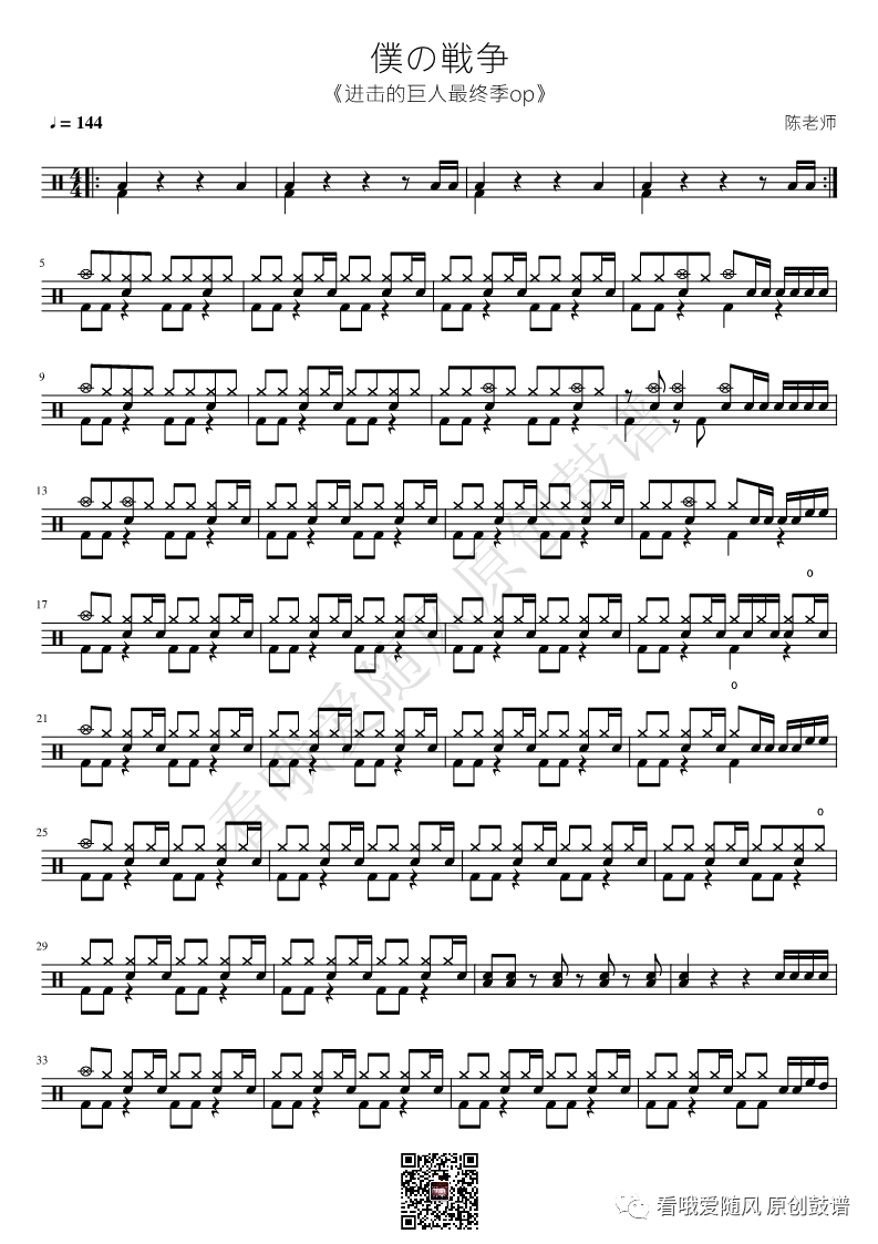 进击的巨人最终季《僕の戦争》鼓谱 - 架子鼓谱 看哦爱随风 • 2022-11-03 • 阅读 1068 进击的巨人最终季《僕の戦争》架子鼓谱, 看哦爱随风编配出品,共有4张高清图谱,由打鼓谱上传并分享。NO.323 僕の戦争【进击的巨人最终季】鼓谱 进击的巨人最终季《僕の戦争》鼓谱 - 架子鼓谱 - 第1张 进击的巨人最终季《僕の戦争》鼓谱 - 架子鼓谱 - 第2张 进击的巨人最终季《僕の戦争》鼓谱 - 架子鼓谱 - 第3张 进击的巨人最终季《僕の戦争》鼓谱 - 架子鼓谱 - 第4张 免责声明:本文版权归属 看哦爱随风,本站不对其内容的准确性给予任何承诺,收录仅供读者参考。如本文侵犯了您的合法权益,请及时联系本站,我们将在24小时内删除处理。本文链接:https://www.dagupu.com/pu/660.html The xx《Intro》鼓谱 - 架子鼓谱 上一篇 2022-11-03 G.O.D.《afterglow》鼓谱 - 架子鼓谱 下一篇 2022-11-03 相关推荐 ONE OK ROCK《Re:make》鼓谱 - 架子鼓谱 ONEOKROCK《Re:make》架子鼓谱,看哦爱随风编配出品,共有3张高清图谱,由打鼓谱上传并分享。 看哦爱随风 2023-06-17 5465 ONE OK ROCK《完全感觉Dreamer》鼓谱 - 架子鼓谱 ONEOKROCK《完全感觉Dreamer》架子鼓谱,看哦爱随风编配出品,共有4张高清图谱,由打鼓谱上传并分享。 看哦爱随风 2023-06-17 4043 ONE OK ROCK《The Beginning》鼓谱 - 架子鼓谱 ONEOKROCK《TheBeginning》架子鼓谱,看哦爱随风编配出品,共有3张高清图谱,由打鼓谱上传并分享。 看哦爱随风 2023-06-17 3607 ONE OK ROCK《未完成交響曲》鼓谱 - 架子鼓谱 ONEOKROCK《未完成交響曲》架子鼓谱,看哦爱随风编配出品,共有1张高清图谱,由打鼓谱上传并分享。 看哦爱随风 2023-06-17 3253 网球王子《future》鼓谱 - 架子鼓谱 网球王子《future》架子鼓谱,看哦爱随风编配出品,共有1张高清图谱,由打鼓谱上传并分享。 看哦爱随风 2023-06-17 3785 夏日入侵企画《人间萤火》鼓谱 - 架子鼓谱 夏日入侵企画《人间萤火》架子鼓谱,看哦爱随风编配出品,共有2张高清图谱,由打鼓谱上传并分享。 看哦爱随风 2023-02-26 3598 夏日入侵企画《勇气》鼓谱 - 架子鼓谱 夏日入侵企画《勇气》架子鼓谱,看哦爱随风编配出品,共有2张高清图谱,由打鼓谱上传并分享。 看哦爱随风 2023-02-26 3600 周杰伦《一路向北》鼓谱 - 架子鼓谱 周杰伦《一路向北》架子鼓谱,看哦爱随风编配出品,共有1张高清图谱,由打鼓谱上传并分享。 看哦爱随风 2023-02-26 5473 萧敬腾《倒带》鼓谱 - 架子鼓谱 萧敬腾《倒带》架子鼓谱,看哦爱随风编配出品,共有2张高清图谱,由打鼓谱上传并分享。 看哦爱随风 2023-02-26 3944 容祖儿《东京人寿》鼓谱 - 架子鼓谱 容祖儿《东京人寿》架子鼓谱,看哦爱随风编配出品,共有2张高清图谱,由打鼓谱上传并分享。 看哦爱随风 2023-02-26 3519 悶餅MOONBAND《Dear Mary》鼓谱 - 架子鼓谱 悶餅MOONBAND《DearMary》架子鼓谱,看哦爱随风编配出品,共有2张高清图谱,由打鼓谱上传并分享。 看哦爱随风 2023-02-19 2930 MY FIRST STORY《Missing You》鼓谱 - 架子鼓谱 MYFIRSTSTORY《MissingYou》架子鼓谱,看哦爱随风编配出品,共有1张高清图谱,由打鼓谱上传并分享。 看哦爱随风 2023-02-19 3298 ONE OK ROCK《I Was King》鼓谱 - 架子鼓谱 ONEOKROCK《IWasKing》架子鼓谱,看哦爱随风编配出品,共有2张高清图谱,由打鼓谱上传并分享。 看哦爱随风 2023-02-19 3143 ONE OK ROCK《I Was King》鼓谱 - 架子鼓谱 ONEOKROCK《IWasKing》架子鼓谱,看哦爱随风编配出品,共有2张高清图谱,由打鼓谱上传并分享。 看哦爱随风 2023-02-19 3204 ONE OK ROCK《エトセトラ》鼓谱 - 架子鼓谱 ONEOKROCK《エトセトラ》架子鼓谱,看哦爱随风编配出品,共有2张高清图谱,由打鼓谱上传并分享。 看哦爱随风 2023-02-19 3266 如龙 维新 OP《Clock Strikes》鼓谱 - 架子鼓谱 如龙维新OP《ClockStrikes》架子鼓谱,看哦爱随风编配出品,共有1张高清图谱,由打鼓谱上传并分享。 看哦爱随风 2023-02-19 3204