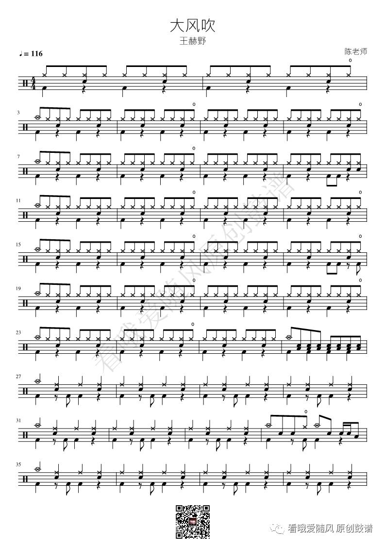 ONEOKROCK《未完成交響曲》架子鼓谱,看哦爱随风编配出品,共有1张高清图谱,由打鼓谱上传并分享。
