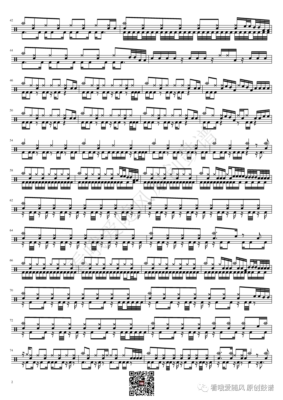 ONEOKROCK《IWasKing》架子鼓谱,看哦爱随风编配出品,共有2张高清图谱,由打鼓谱上传并分享。