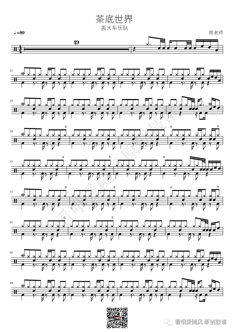丢火车乐队《茶底世界》架子鼓谱, 看哦爱随风编配出品,共有2张高清图谱,由打鼓谱上传并分享。NO.346 茶底世界 丢火车乐队 鼓谱