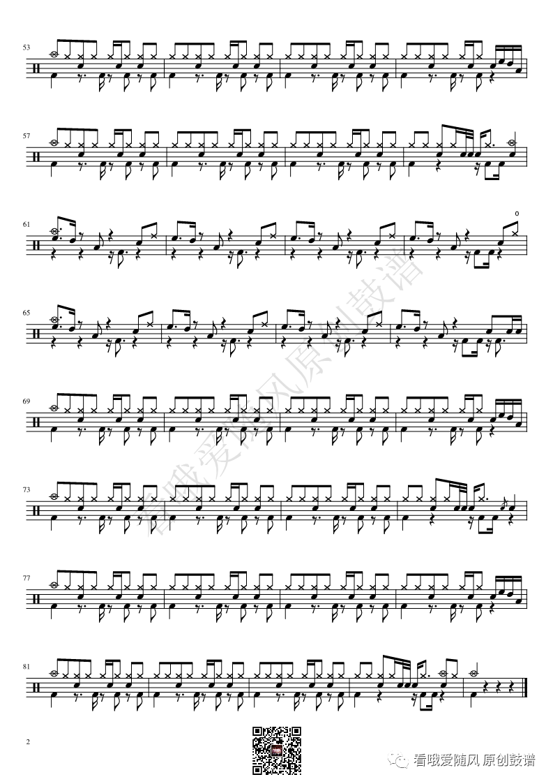 ONEOKROCK《IWasKing》架子鼓谱,看哦爱随风编配出品,共有2张高清图谱,由打鼓谱上传并分享。