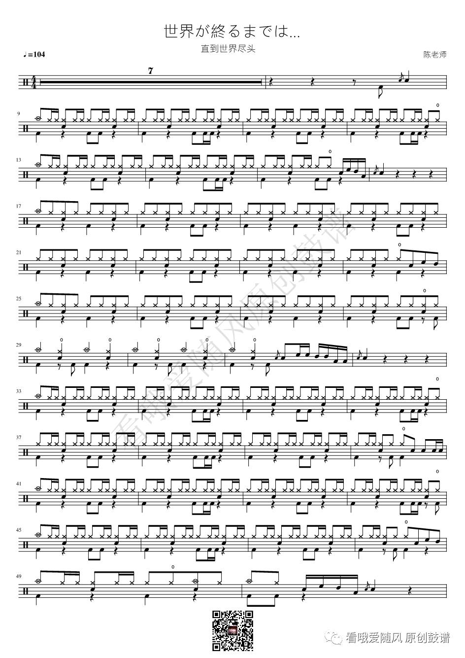ONEOKROCK《未完成交響曲》架子鼓谱,看哦爱随风编配出品,共有1张高清图谱,由打鼓谱上传并分享。