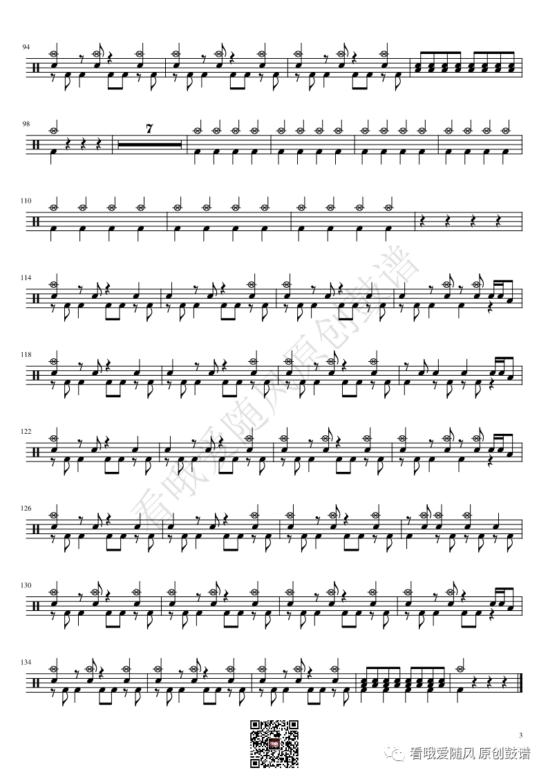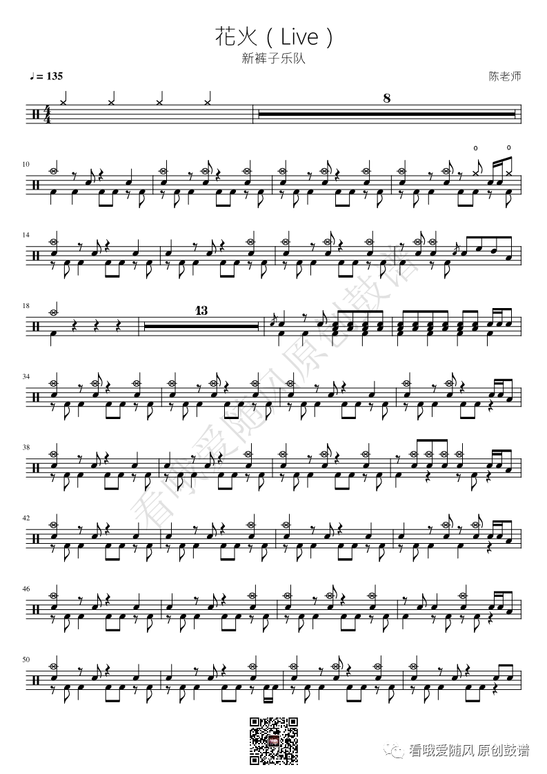 新裤子《花火》架子鼓谱Live, 看哦爱随风编配出品,共有3张高清图谱,由打鼓谱上传并分享。NO.353 花火(Live)新裤子乐队 鼓谱