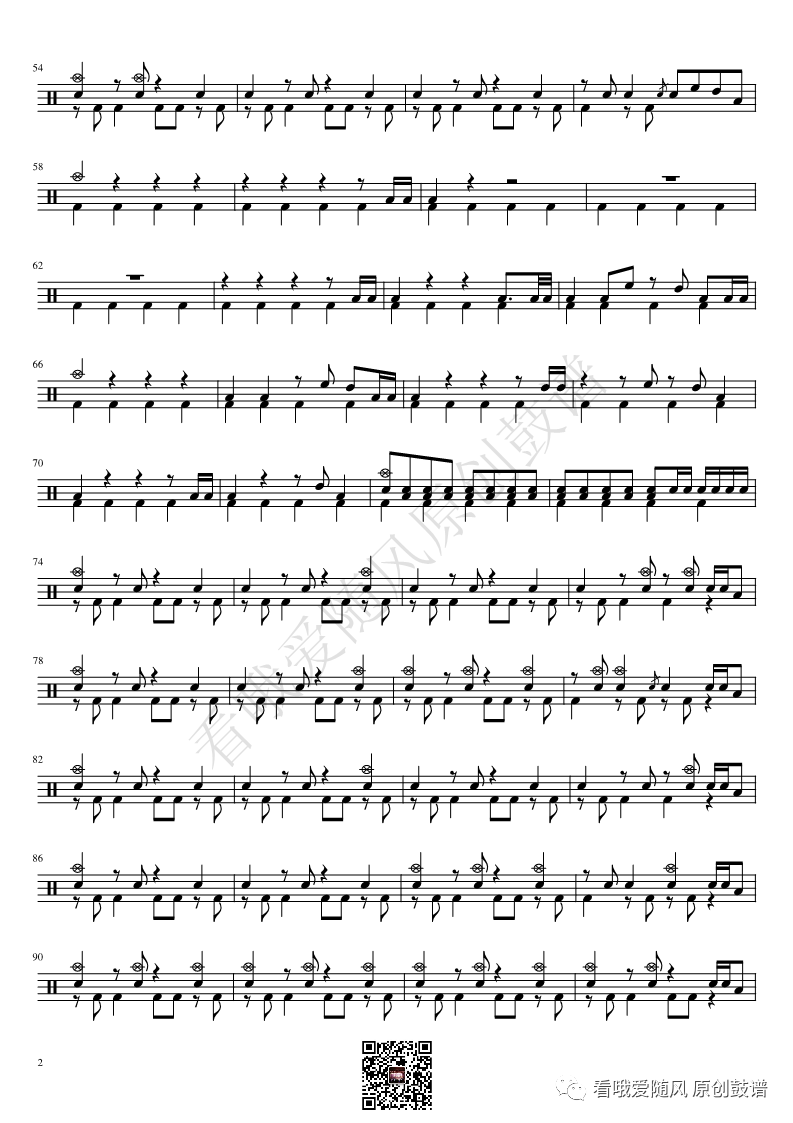 ONEOKROCK《IWasKing》架子鼓谱,看哦爱随风编配出品,共有2张高清图谱,由打鼓谱上传并分享。