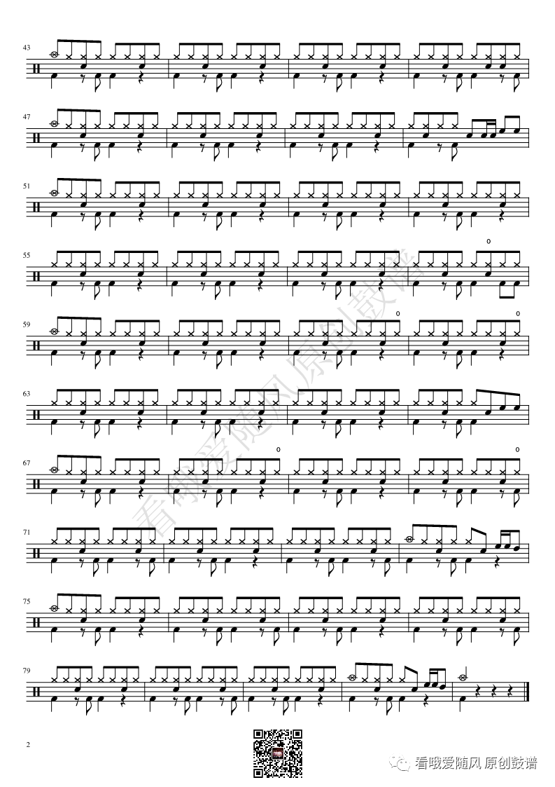 新裤子《总有一天我会欺骗你》架子鼓谱, 看哦爱随风编配出品,共有2张高清图谱,由打鼓谱上传并分享。NO.352 总有一天我会欺骗你 新裤子乐队 鼓谱