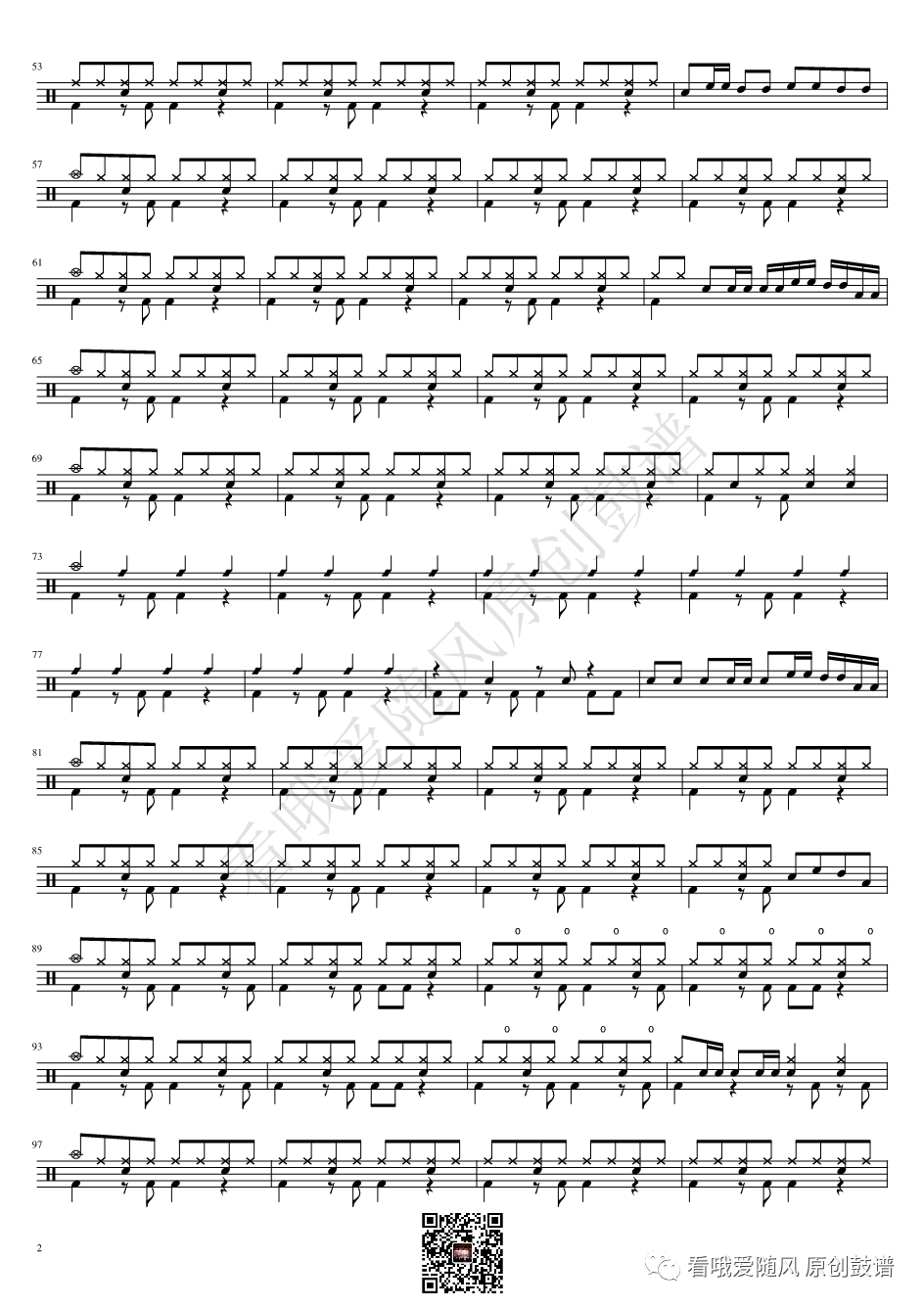 ONEOKROCK《IWasKing》架子鼓谱,看哦爱随风编配出品,共有2张高清图谱,由打鼓谱上传并分享。