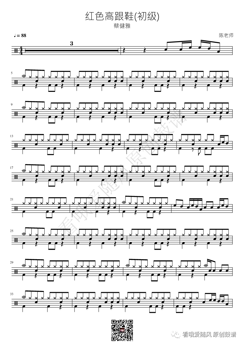 蔡健雅《红色高跟鞋》架子鼓谱初级, 看哦爱随风编配出品,共有2张高清图谱,由打鼓谱上传并分享。NO.367 红色高跟鞋(初级)蔡健雅 鼓谱
