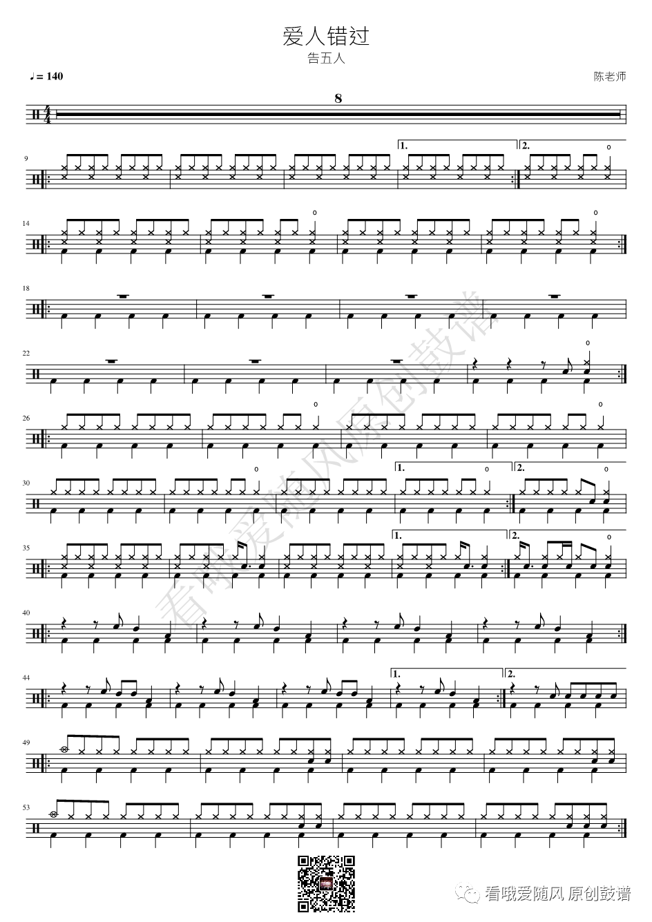 MYFIRSTSTORY《MissingYou》架子鼓谱,看哦爱随风编配出品,共有1张高清图谱,由打鼓谱上传并分享。