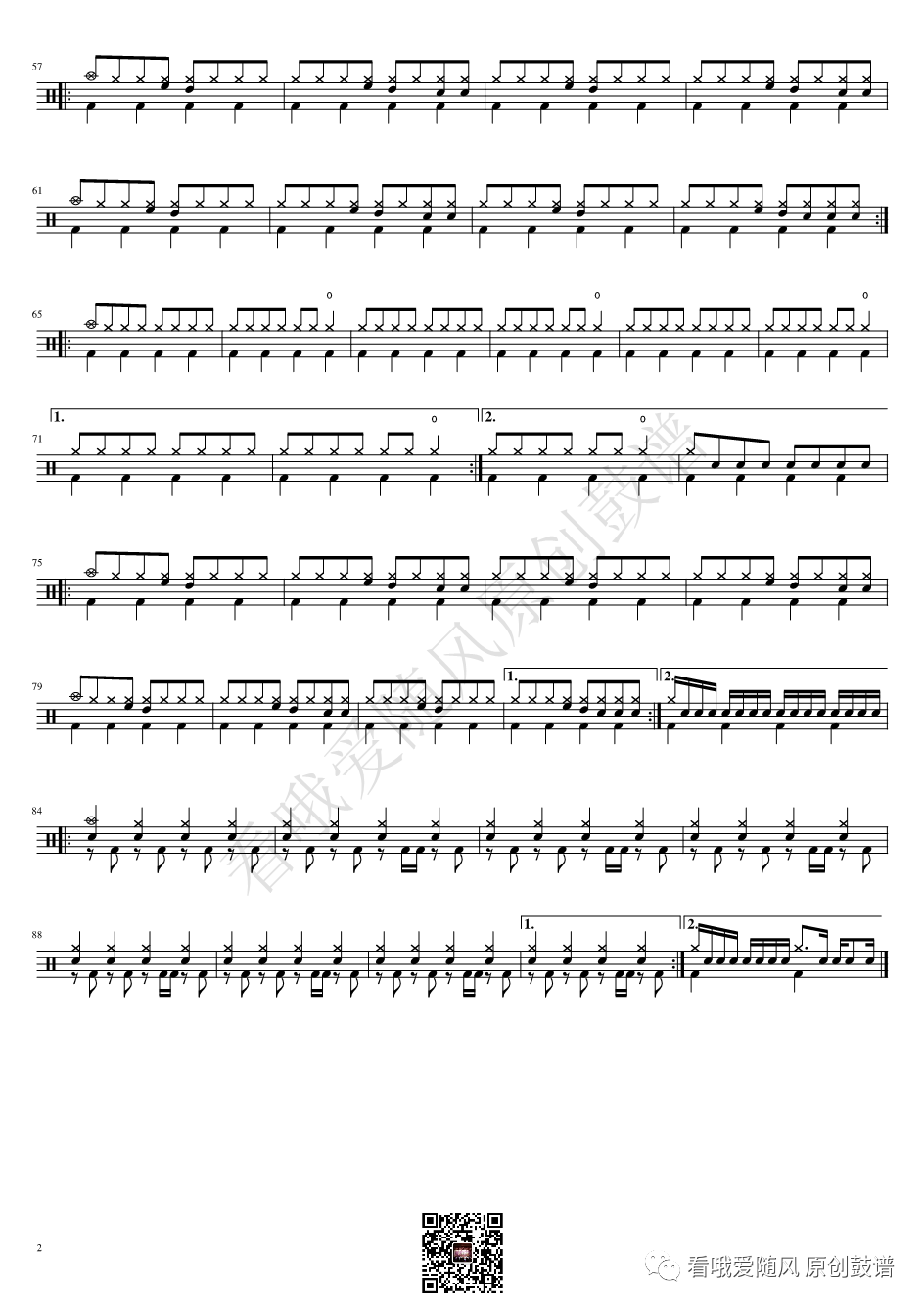 ONEOKROCK《IWasKing》架子鼓谱,看哦爱随风编配出品,共有2张高清图谱,由打鼓谱上传并分享。
