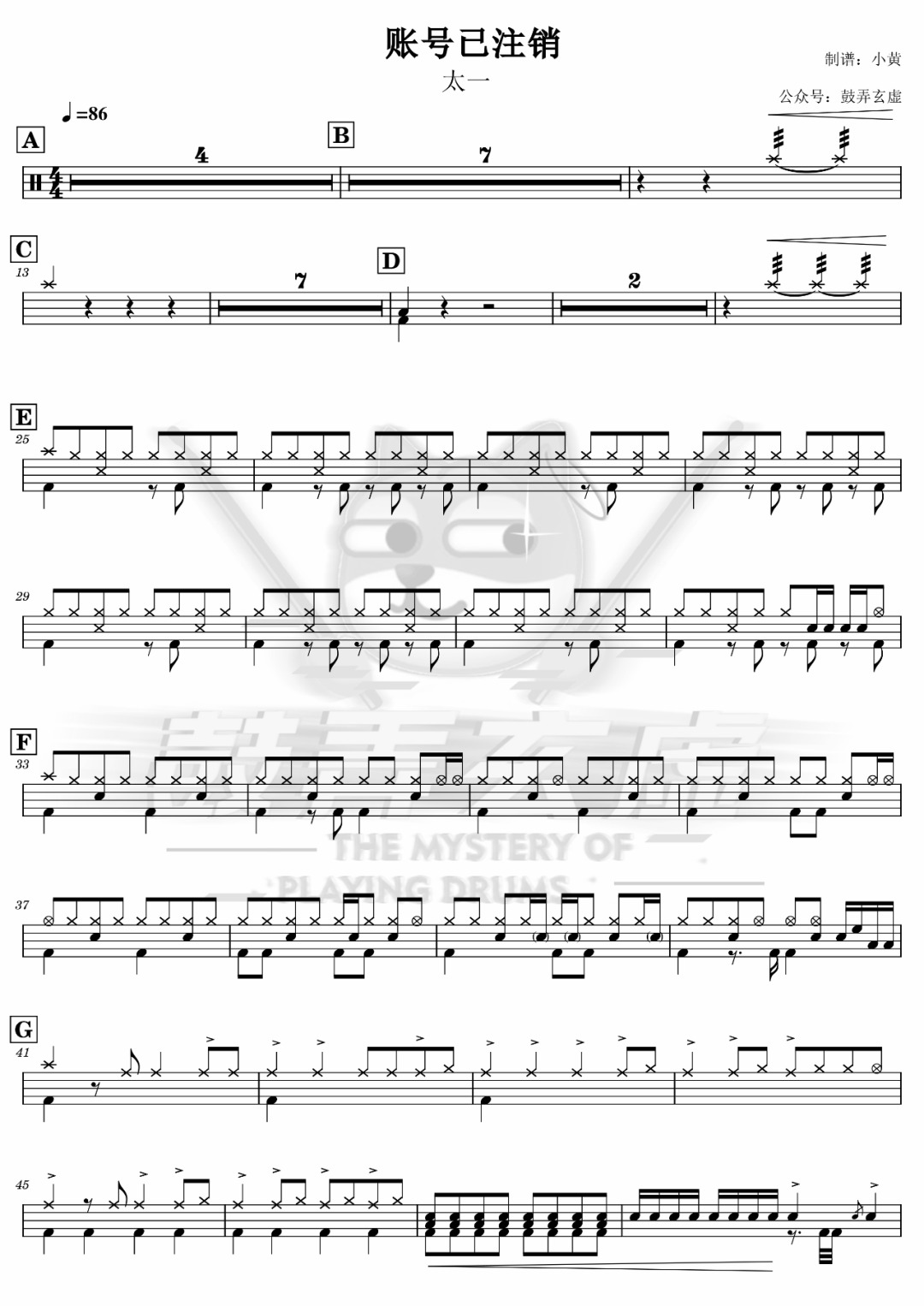 如龙维新OP《ClockStrikes》架子鼓谱,看哦爱随风编配出品,共有1张高清图谱,由打鼓谱上传并分享。